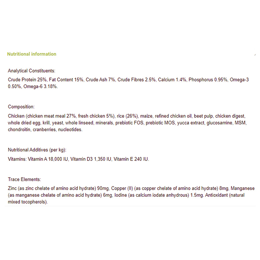 Arden Grange adult dog food with fresh chicken and rice is a complete, super-premium pet food for normally active adult dogs. It contains fresh chicken, which is a delicious and highly digestible protein source.