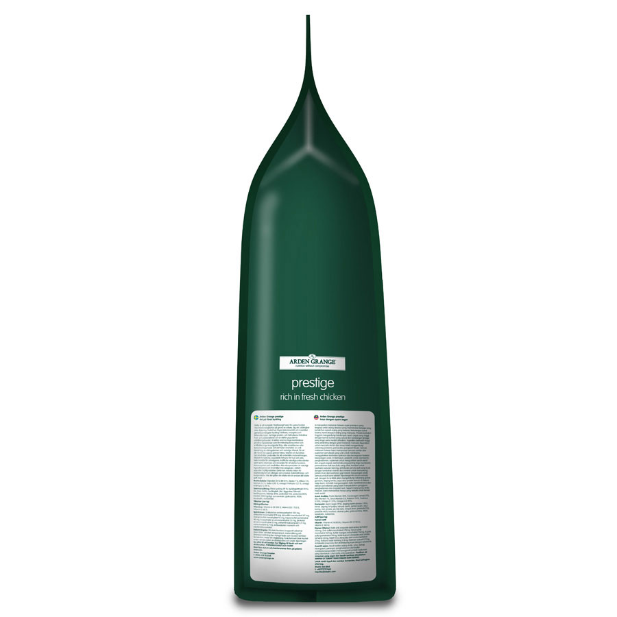 Arden Grange Prestige, rich in fresh chicken, is a concentrated recipe designed to fulfil the nutritional needs of dogs with higher requirements for calories or smaller feeding portions, whether a much-loved family pet, or a working or show dog. The higher protein and fat levels promote excellent condition in a highly digestible form, which is particularly suitable for pregnant or lactating bitches and convalescing dogs. This extremely palatable diet is also suitable for the fussiest eater.