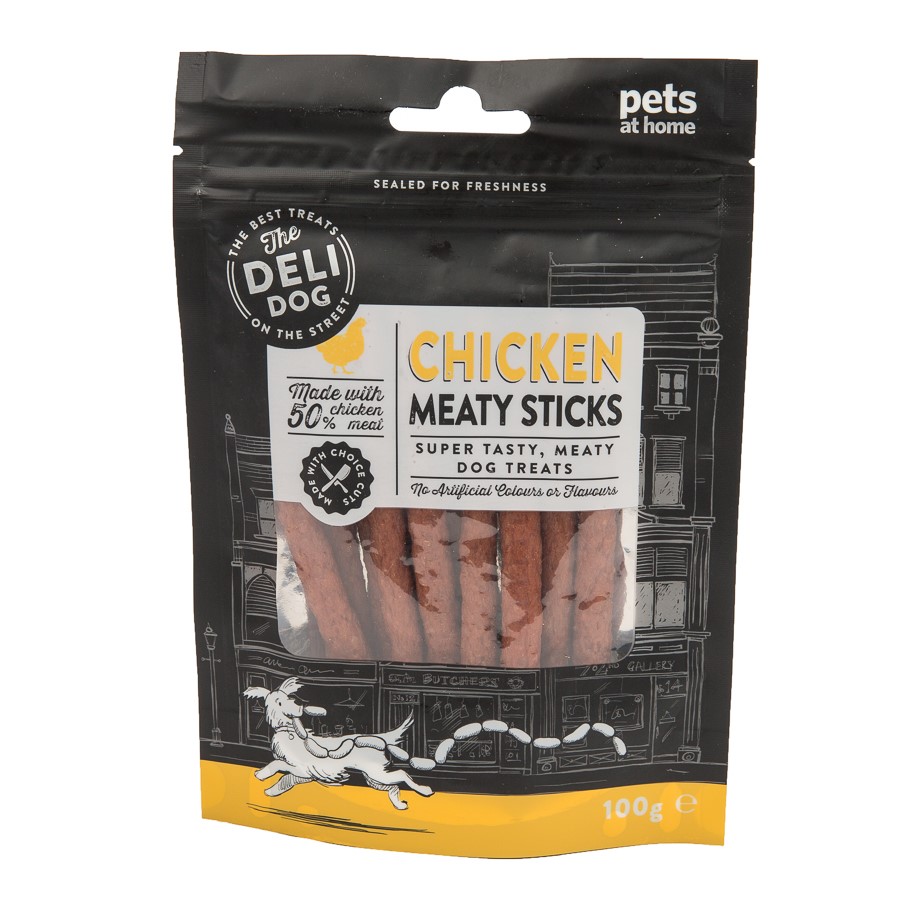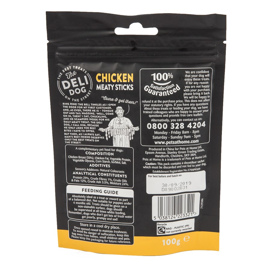 The Deli Dog Chicken Sticks dog treats are made from real chicken to create a delicious and nutritious snack for your furry friend. Made with no artificial colours or flavours and is made with 50% chicken. The chewy chicken stick can also help stimulate your dog’s natural urge to chew, which can promote health teeth and gums. These treats can be given as a wholesome reward between meals or just as a treat to show them how special they are.